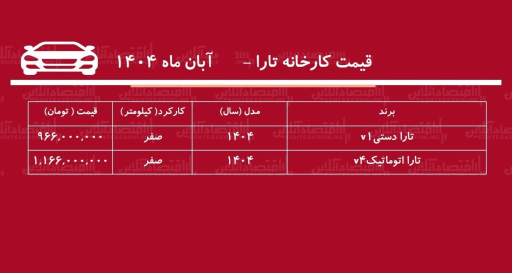 افزایش قیمت کارخانهای تارا امروز ۱۲ آبان ۱۴۰۴