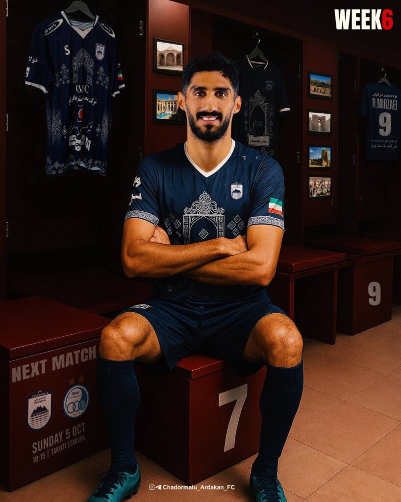 در این پوستر، تصویر علی خدادادی، وینگر چادرملو، درون رختکن روی صندلی چوبیای نشسته بود که عدد ۷ روی آن نقش بسته است. همچنین در گوشه سمت راست پوستر، عدد «۶» که به هفته ششم لیگ اشاره داشت، با رنگ قرمز درج شده بود.