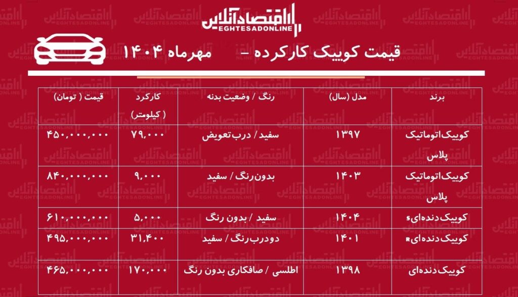 گرانترین و ارزانترین کوییک کارکرده در بازار امروز ۳۰ مهر ۱۴۰۴